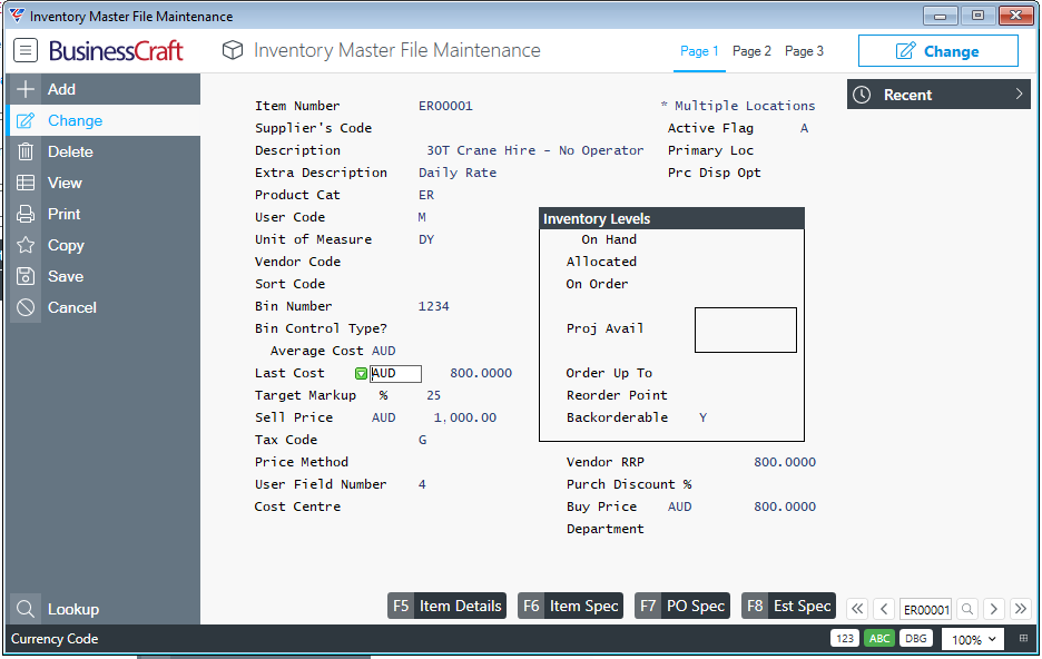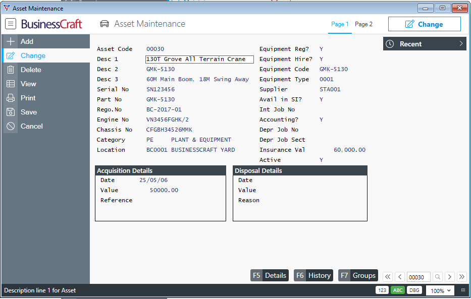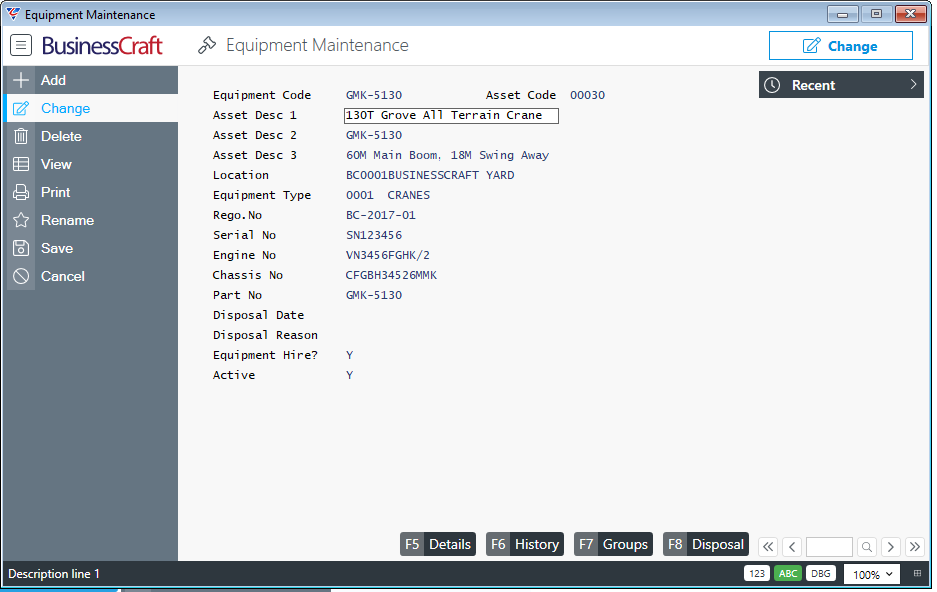BusinessCraft provides a wide range of functionality to address the requirements of handling the costing and invoicing of equipment including: