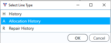 Use the History (F6) function key to open the Select Line Type menu and choose Allocation History: