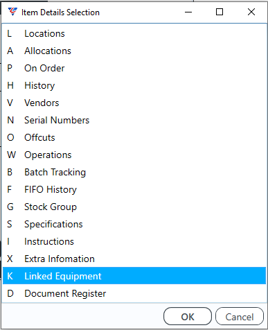 Use the Item Details (F5) function key to open the Item Details Selection menu: